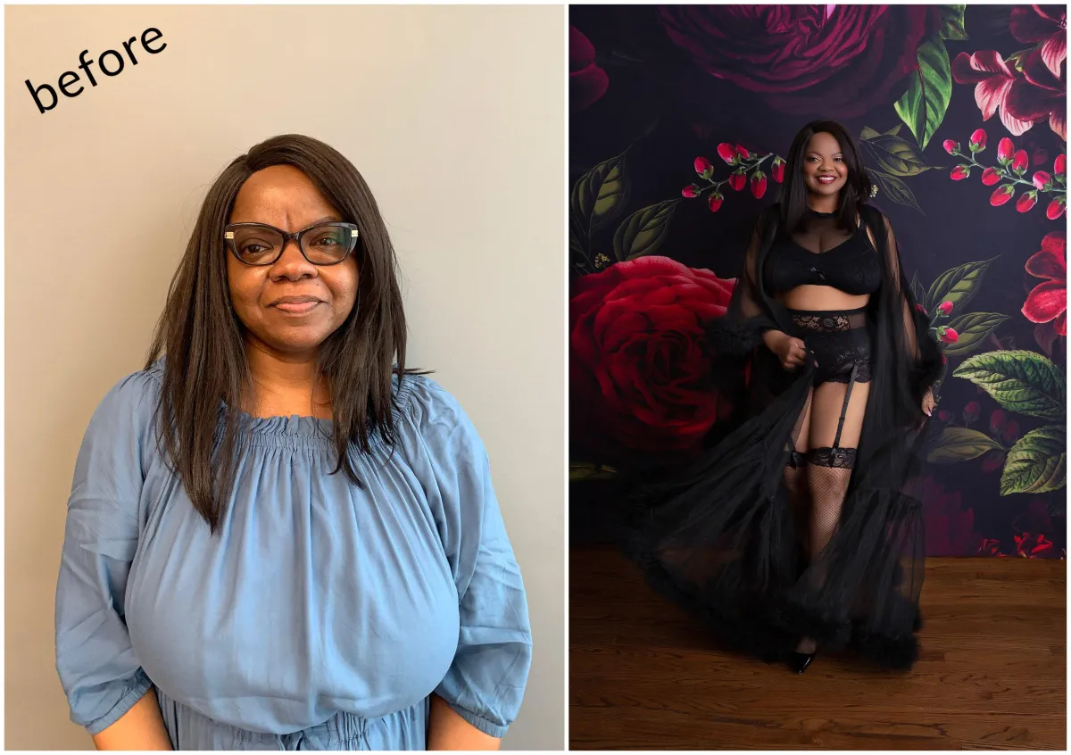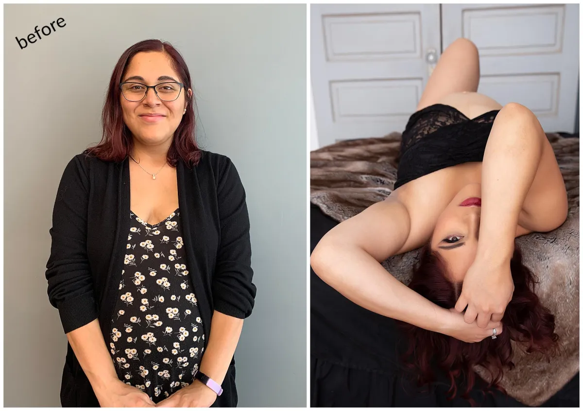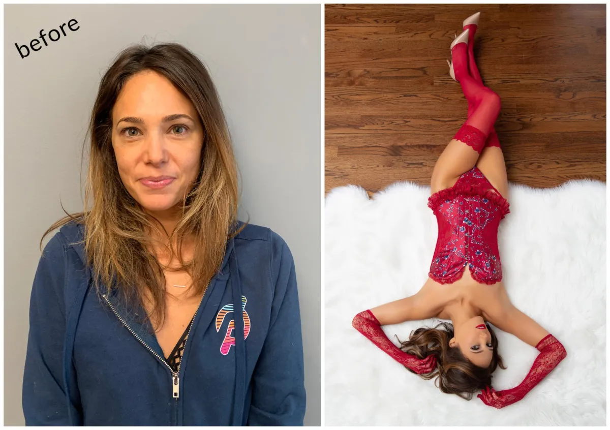 "What a wonderful experience! I am so grateful to Liz for her excellent direction, helping me feel comfortable and sexy in a safe environment. I am so impressed with the results. These are some of the best photos of myself ever taken. Liz is fun, professional, and so good at her work! I came in with a makeup inspiration, and Laura did not disappoint. My hair and makeup were flawless, and Liz guided my outfit and accessory combinations. If you are looking to feel empowered in your body and confident in front of the camera, look no further. Liz and her team provide top notch quality!"